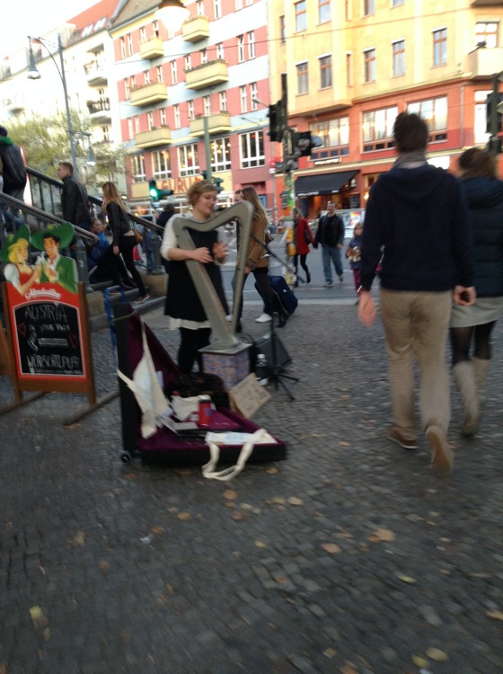 帰り際、マウアーパーク最寄のEberswalderstr.駅前ではハープの弾き語りの女性もいました。この日だけでもエレクトロ、ファンク、ポップスなど様々な音楽を聞く事が出来ました。